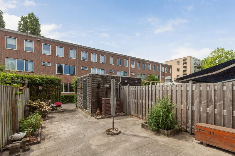De tuin is heerlijk op het zuiden gelegen, hier kan je dan al vroeg in het jaar genieten van het zonnetje! De tuin sluit direct aan op de steeg in de tuin staat een houten berging.