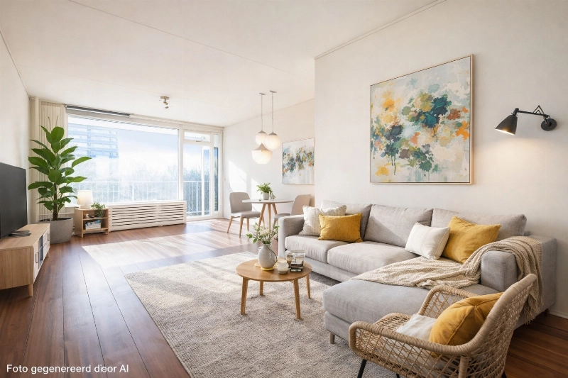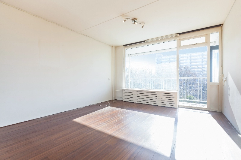 Bij binnenkomst valt direct de verzorgde afwerking op. De hal en woonkamer zijn voorzien van een nette laminaatvloer, wat zorgt voor een warme uitstraling. De lichte woonkamer vormt het hart van de woning en is voorzien van een stijlvolle radiatorombouw. Vanuit hier heb je direct toegang tot het balkon waar je heerlijk kunt genieten van buiten.