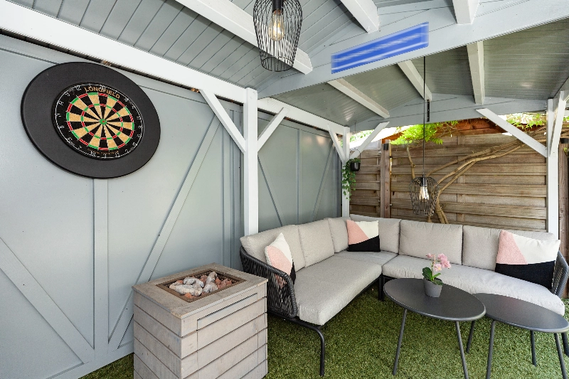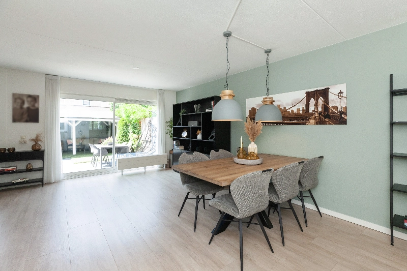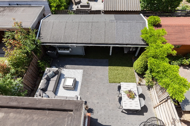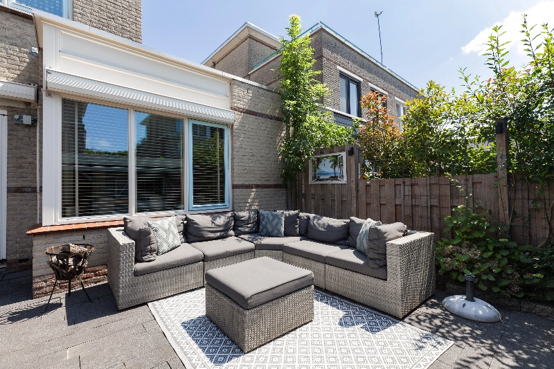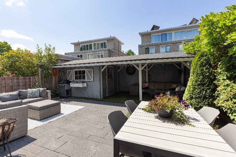 Via de woonkamer heb je middels een schuifpui met plissé deur, toegang tot de achtertuin. Deze tuin is op het zuiden gelegen is en beschikt over een royale overkapping, berging en zonwering… de ideale tuin om op zonnige dagen van het buitenleven te genieten!