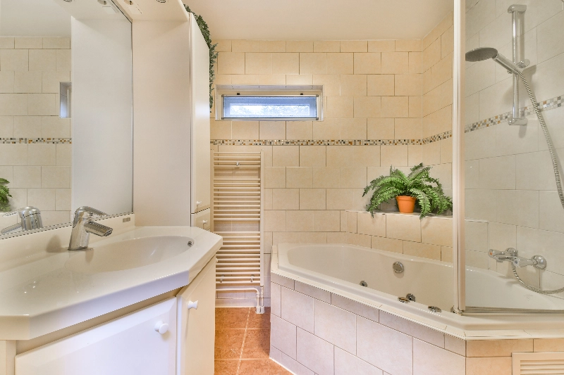 De badkamer is goed onderhouden en voorzien van een wastafelmeubel, hoekbubbelbad met douchegelegenheid en een design radiator. Er is tevens een mechanische ventilatie aanwezig.