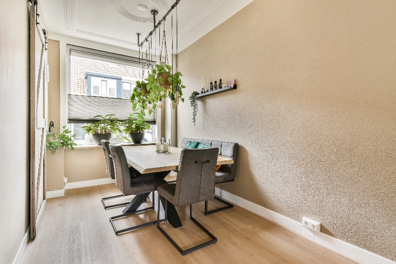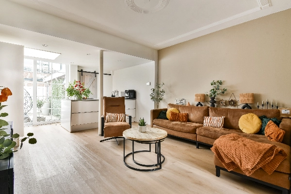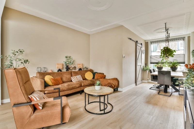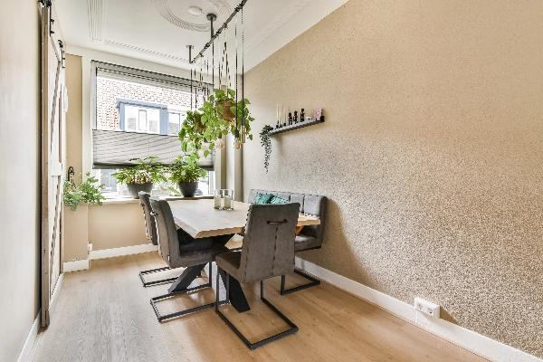 - Gedeeltelijk voorzetwanden in woonkamer geplaatst;