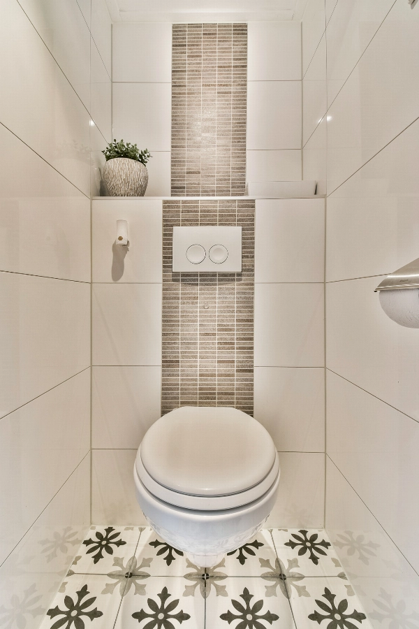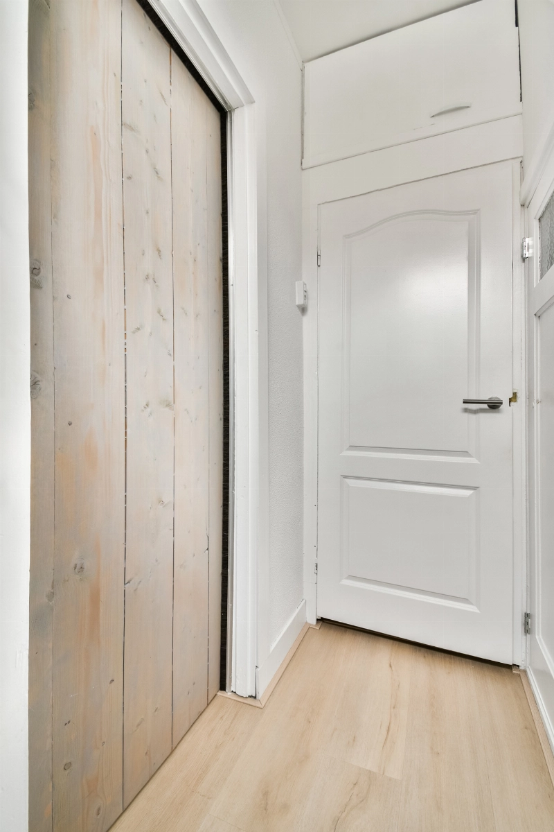 Modern betegelde toiletruimte met witte wand- en portugese vloertegels en een zwevend closet. Trapkast. Meterkast voorzien van 7 groepen, aardlekschakelaar en een hoofdschakelaar. In de meterkast vind je ook de bediening van de elektrische zonwering in de voortuin.