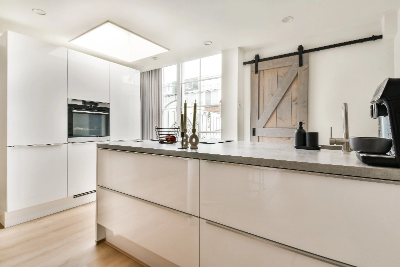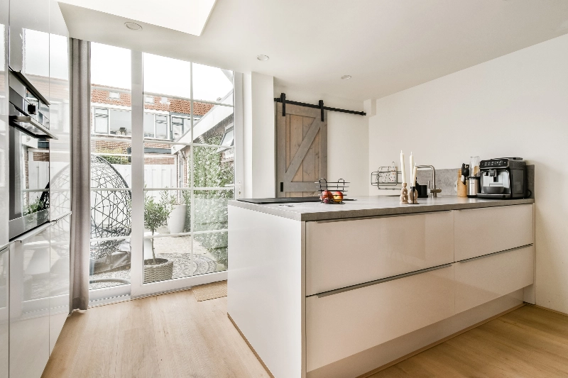 In 2020 is de lichtkoepel vervangen én is er een nieuwe keuken geplaatst. Deze is voorzien van een mooie witte hoogglans opstelling voorzien van een hoge kastenwand met koelkast, vriezer, oven en veel bergruimte. Het heerlijke kookeiland heeft een mooie betonlook kunststof werkblad met geïntegreerde stopcontacten. Tevens vind je hier laden, een elektrisch kookplaat met afzuiging, kokend waterkraan en een vaatwasser.
