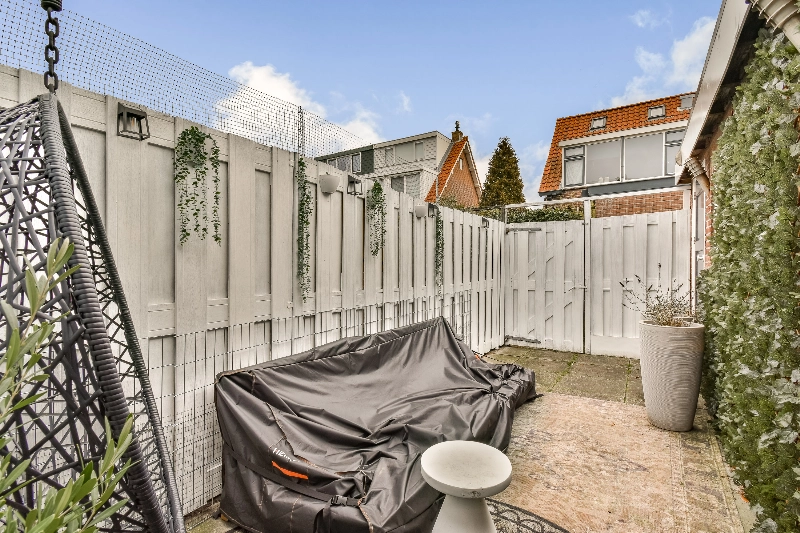 De achtertuin is gelegen op het Oosten en is keurig aangelegd. Er is een achterom en een stenen berging welke verwarmd is en voorzien is van de CV-combi en de opstelplaats voor de wasmachine en droger.