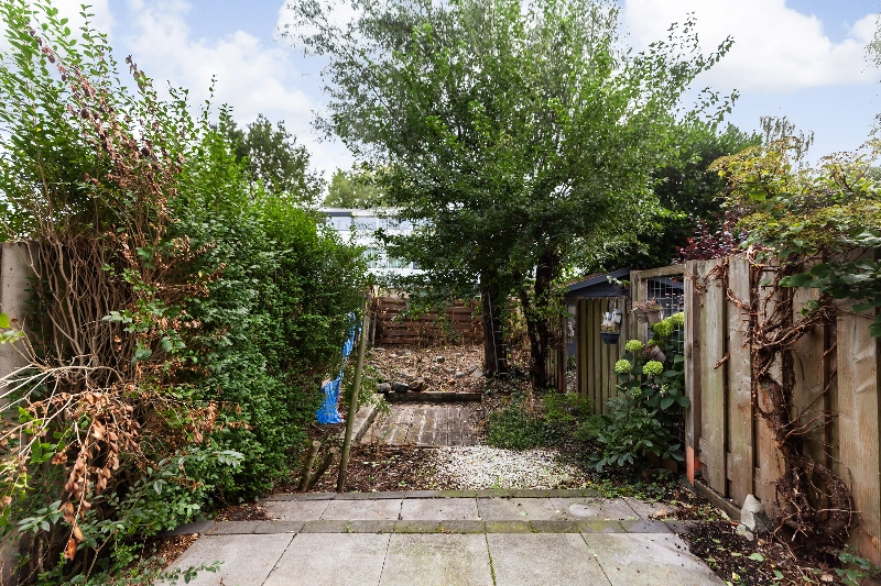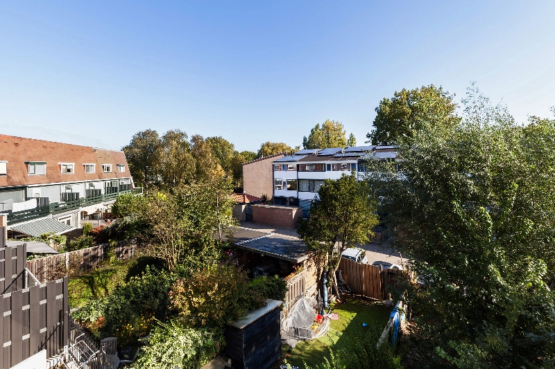 Ruime achtertuin van maar liefst 12 meter diep is een op het oosten gelegen. De tuin kan naar eigen inzicht worden ingericht.