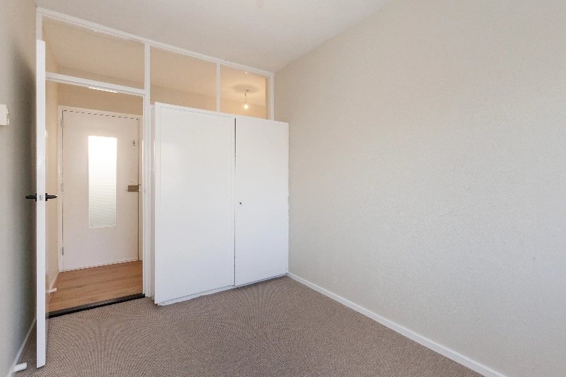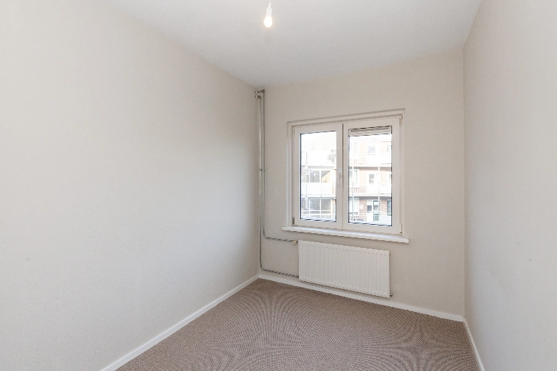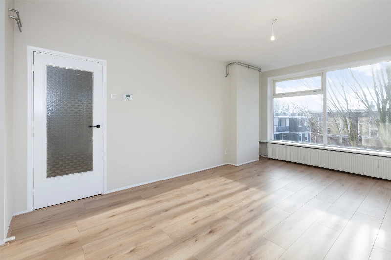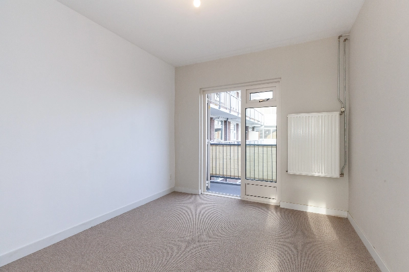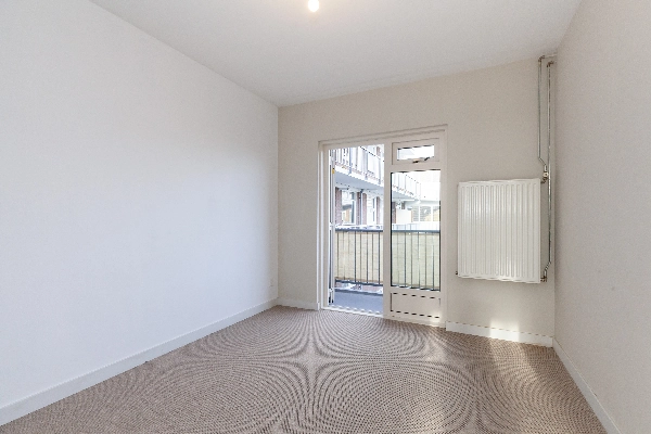 De woonkamer is heerlijk licht dankzij de grote raampartij en het extra zijraam. Op de vloer ligt een nieuwe houtlook laminaatvloer. Direct aan de woonkamer grenst de 3e slaapkamer, die toegang biedt tot het balkon. Hier geniet je in alle rust van het buitenleven.
