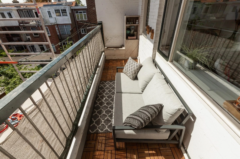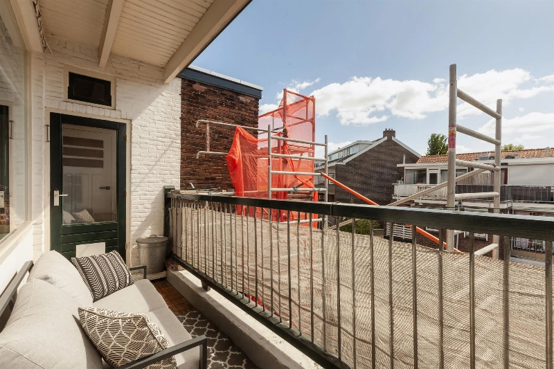 Het brede balkon is een heerlijke plek om al vroeg op de dag van het zonnetje te genieten en deze is groot genoeg om een fijne zitplek te maken.