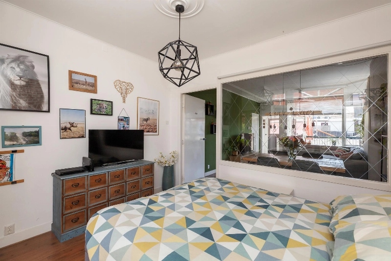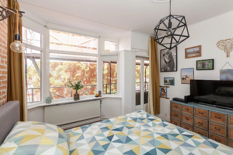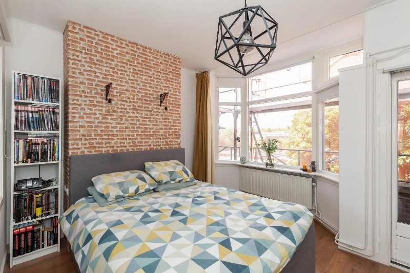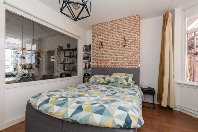 Via de woonkamer bereik je de grote slaapkamer die door middel van een glazen wand gescheiden wordt. De slaapkamer heeft een sfeervolle erker en een deur naar een klein balkon aan de voorzijde met dubbele deur met hor. Dit geeft de slaapkamer nét even die charme!