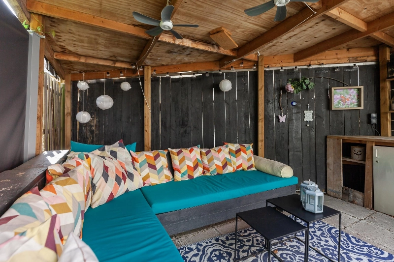En dan die tuin…. deze is met recht riant te noemen en beschikt over een achteringang, houten berging en een ruime overkapping. Hier kan je heerlijk de zomerse dagen doorbrengen!