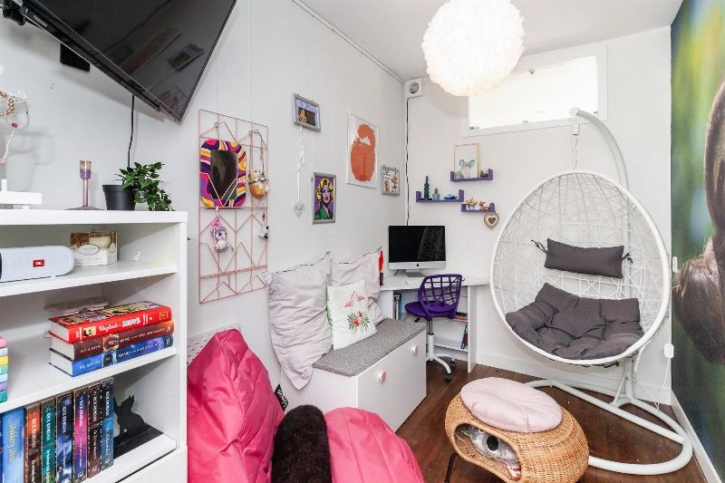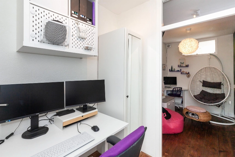Via de woonkamer bereik je een tussenhal welke momenteel in gebruik is als werkplek. Hier vindt je aan de voorzijde slaapkamer II. Deze is eveneens voorzien van een kunststof kozijn en een nieuw geplaatst rolluik.