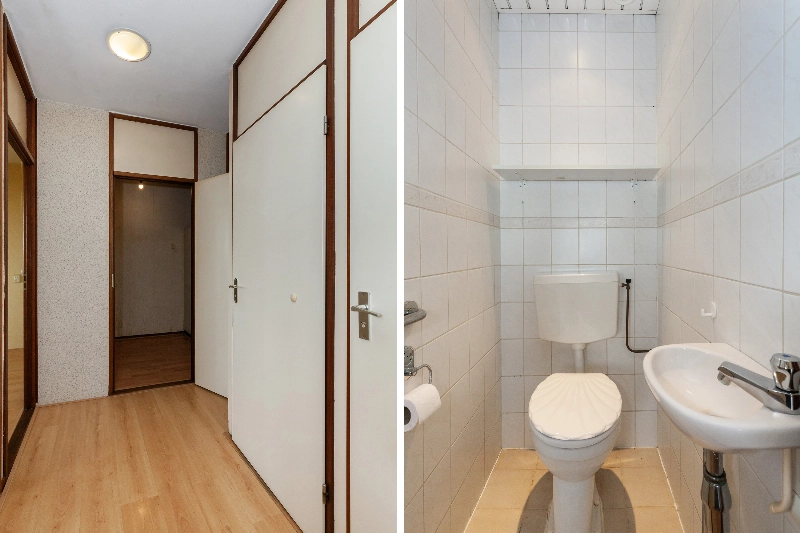 Via de mooie afgesloten entree met bellentableau en brievenbussen bereikt u via de hal de lift naar de 6e verdieping.