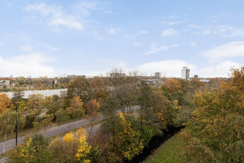 Op de 5e etage van het keurig onderhouden complex aan de Burgemeester A. van Walsumlaan bevindt zich dit ruime 4-kamer hoekappartement. De woning is o.a. voorzien van een lichte woonkamer, drie slaapkamers en een heerlijk zonnig balkon gelegen op het zuidwesten. Zowel aan de voor- als achterzijde uitzicht op de groene omgeving. Op de begane grond vindt u uw eigen (fietsen)berging.
