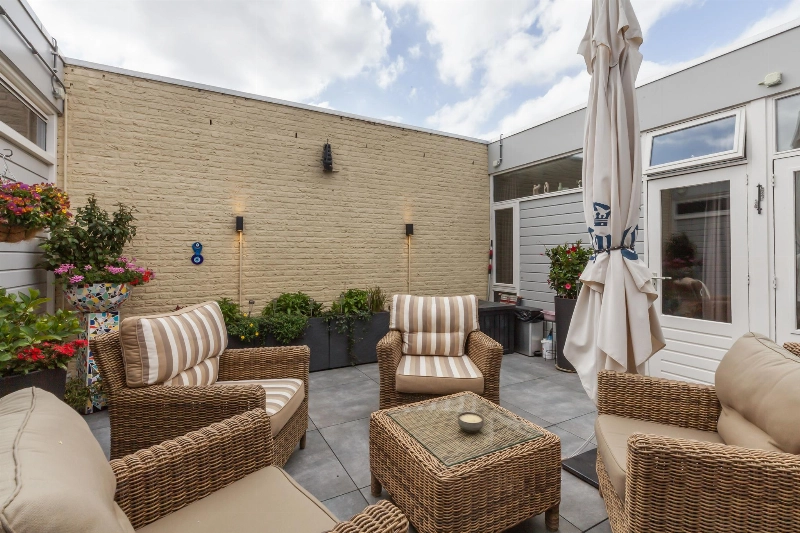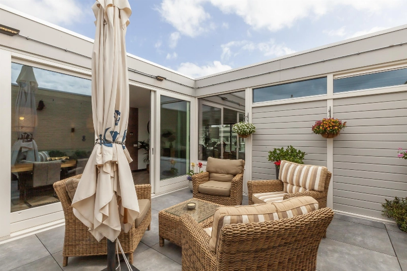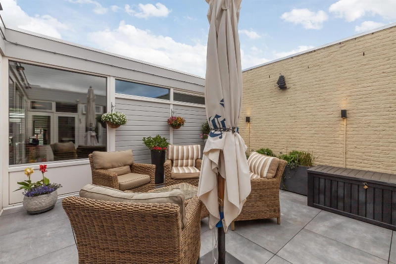 De patio is een heerlijke buitenruimte van 25m² en hier kunt u volop genieten van de zon!