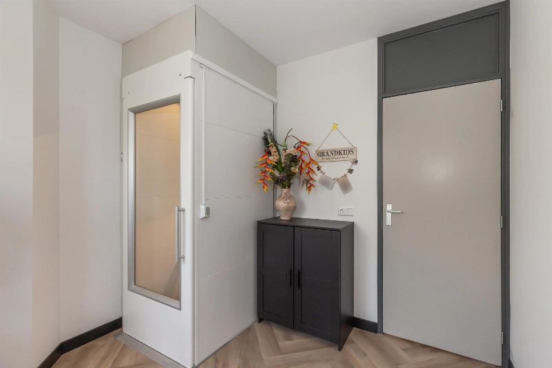 Eind 2021 is het appartement geheel verbouwd en omgetoverd tot een paleisje! Zo is het gehele appartement voorzien van vloerverwarming met een mooie PVC-vloer, een nieuwe keuken, toilet en zijn alle wanden en plafonds gestuct. Het voormalige balkon is bij de badkamer getrokken en hier is een ruime, luxe badkamer gerealiseerd. Er is een airco geplaatst en de twee slaapkamers aan de achterzijde zijn samengevoegd waardoor een prachtige masterbedroom is ontstaan. Wenst u hier liever weer twee slaapkamers? Dan kan eenvoudig weer teruggebracht worden! De 2e slaapkamer is ook ruim en daar is de lift geplaatst die u weer naar de entreehal brengt.