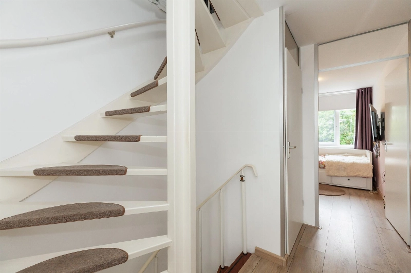 Wat direct opvalt is de diepe, zonnige achtertuin op het zuidwesten – een heerlijke plek om te genieten van lange zomerdagen en gezellige avonden. De begane grond is praktisch én sfeervol ingedeeld: de keuken is naar de voorzijde verplaatst en vormt nu een gezellige woonkeuken, compleet met een moderne opstelling en een stijlvolle koffiebar. De tuingerichte woonkamer loopt over de volle breedte van de woning en biedt niet alleen veel ruimte, maar ook privacy en een mooie verbinding met buiten. De plavuizen vloer met vloerverwarming zorgt voor extra comfort.