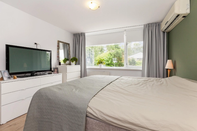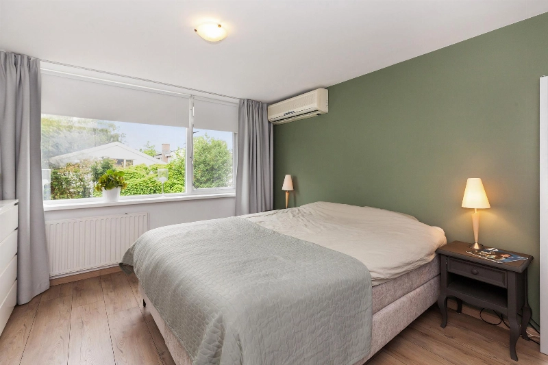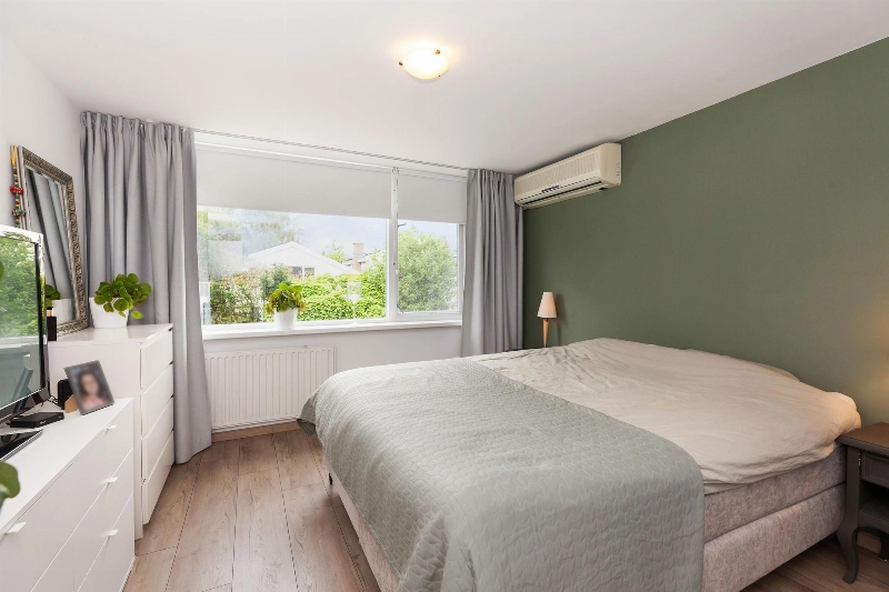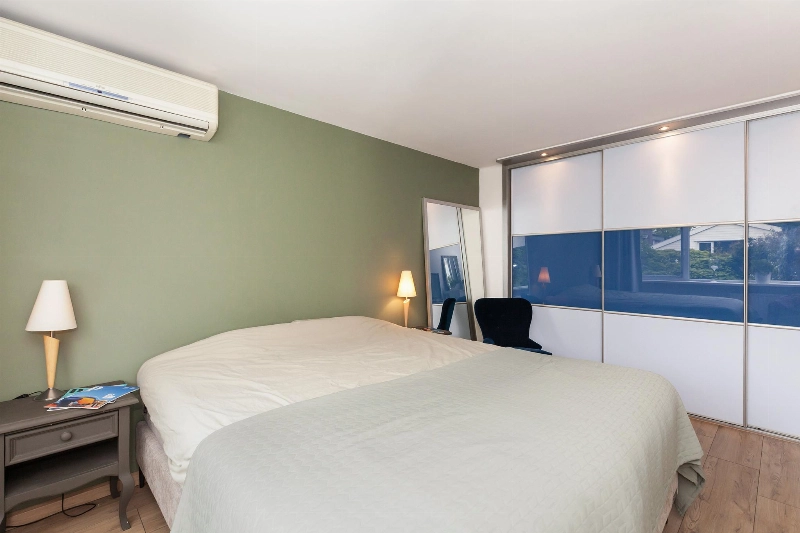 - Slaapkamer I (achterzijde) is uitgerust met een airco (koelen én verwarmen) en een ingebouwde kast.