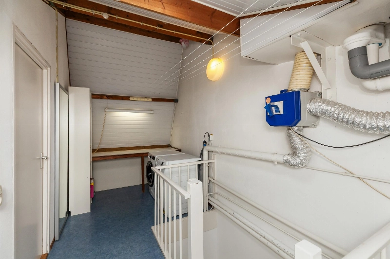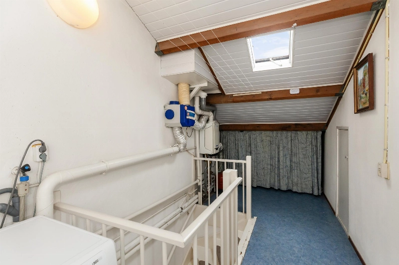 De zolder is bereikbaar via een vaste houten trap. Op de voorzolder is volop ruimte voor de wasmachine, droger en de CV-combi ketel (Remeha Tzerra, 2014). Een dakraam zorgt voor extra daglicht. Achter een kleine deur ligt een royale bergruimte.