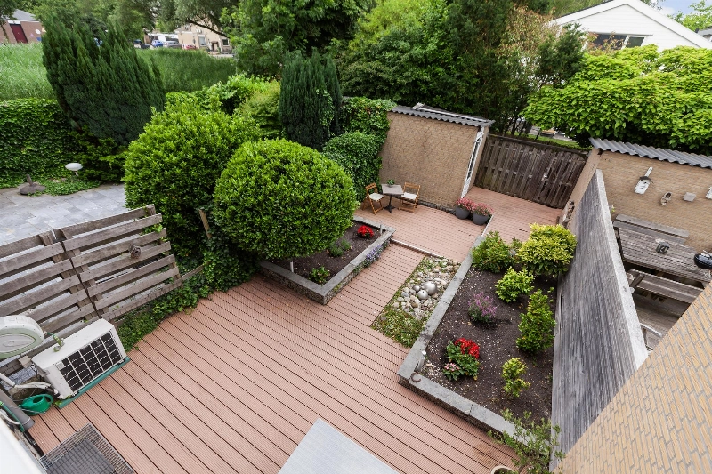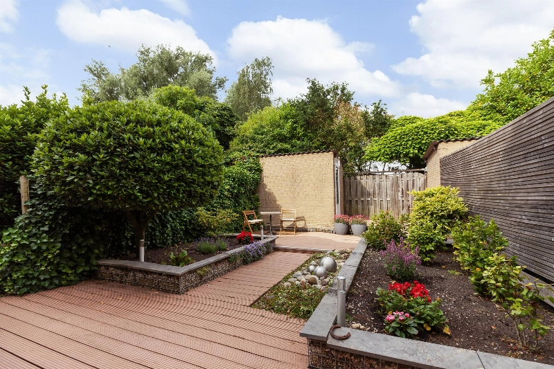 - Zonnige, diepe achtertuin op het zuidwesten met elektrisch zonnescherm