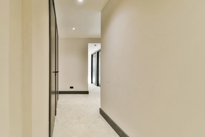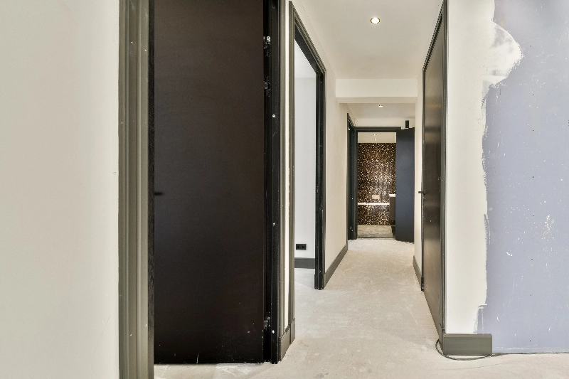 Het appartement beschikt over een royale entree en gang, een uitgebreide meterkast en strak gestucte plafonds voorzien van geïntegreerde ledverlichting. Er zijn drie slaapkamers, waaronder een royale hoofdslaapkamer met een luxe tweede badkamer en suite, voorzien van een wastafelmeubel en een separate douchehoek. Daarnaast is er een separate, luxe badkamer en zijn er twee toiletruimtes aanwezig. Alle binnendeuren zijn uitgevoerd in stijlvol zwart en gecombineerd met hoge plinten, wat bijdraagt aan de verzorgde en eigentijdse uitstraling.
