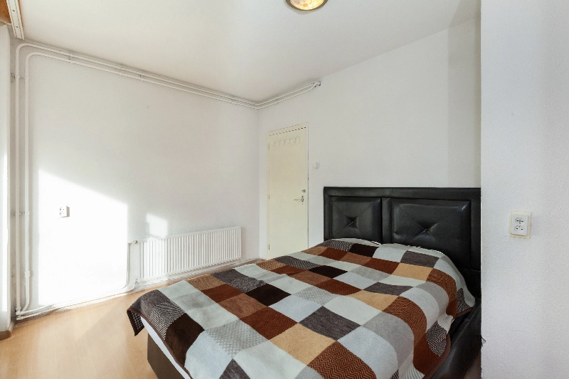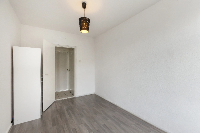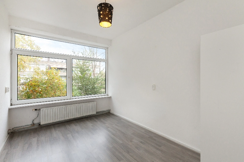 Slaapkamer II is gelegen aan de voorzijde en is voorzien van een kunststof kozijn met dubbel glas, laminaatvloer en spuitwerkwanden.