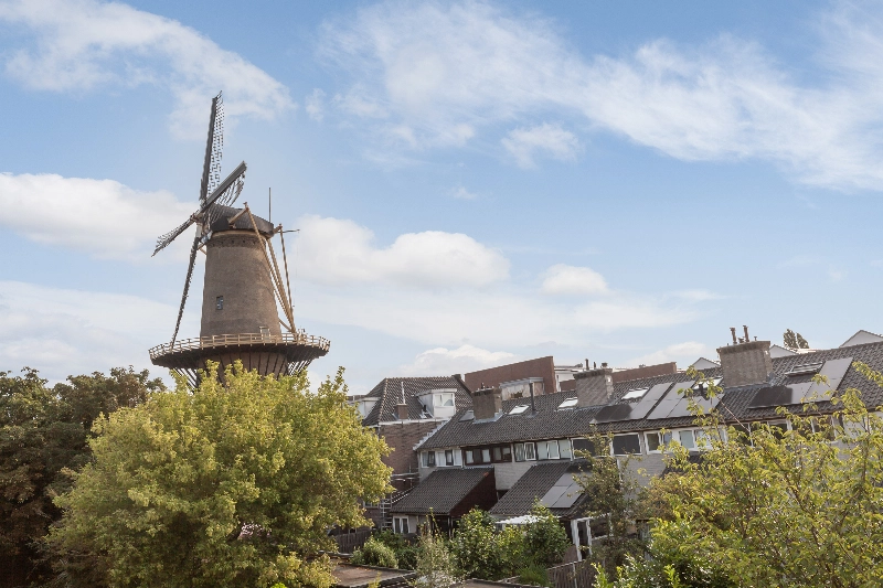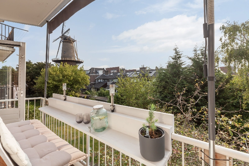 Het appartement beschikt over een balkon met uitzicht op de molen en is bereikbaar vanuit de keuken en werkkamer, op de begane grond is een toegang tot een prachtig verzorgde gezamenlijke binnentuin – een groene en rustige plek midden in de stad waar u heerlijk kunt ontspannen en genieten van de zon.