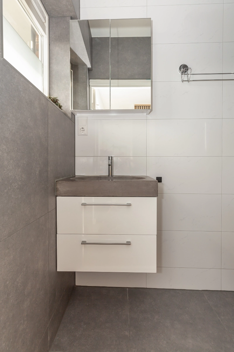 De in 2022 vernieuwde badkamer en het toilet zijn modern en luxe afgewerkt. Hier is gekozen voor een eigentijdse uitstraling en praktisch comfort.