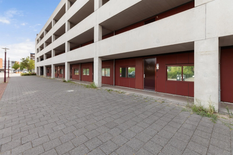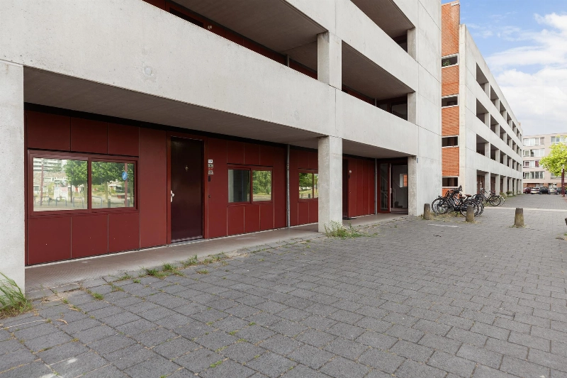 Dankzij de ligging op de begane grond is de voordeur direct toegankelijk vanaf de straatzijde. Daarnaast is er een algemene, afgesloten entree met een trappenhuis en lift naast de bergingen en de parkeergarage.