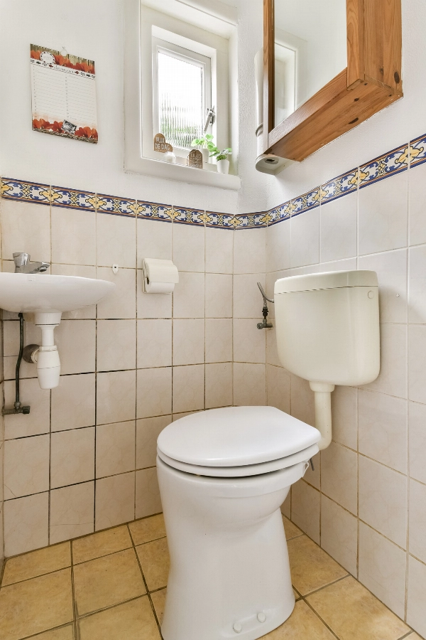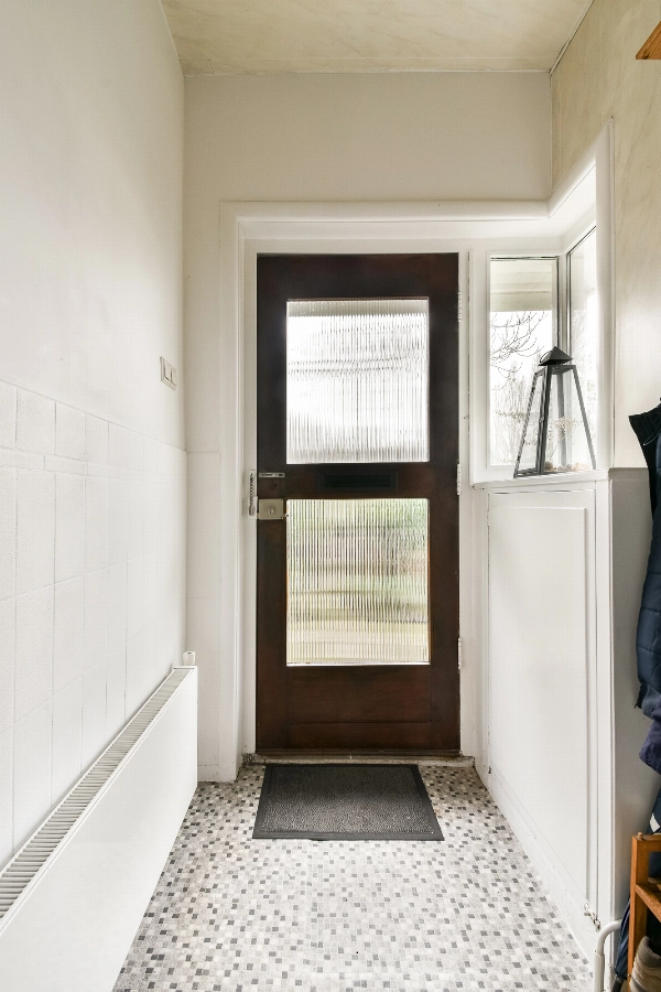 Entree via het tochtportaal met vernieuwde meterkast (6 groepen en 2 aardlekschakelaars). De hal geeft toegang tot een nette ruime toiletruimte met witte betegeling, een duoblok, een fonteintje en praktische kelder bergruimte onder de trap,