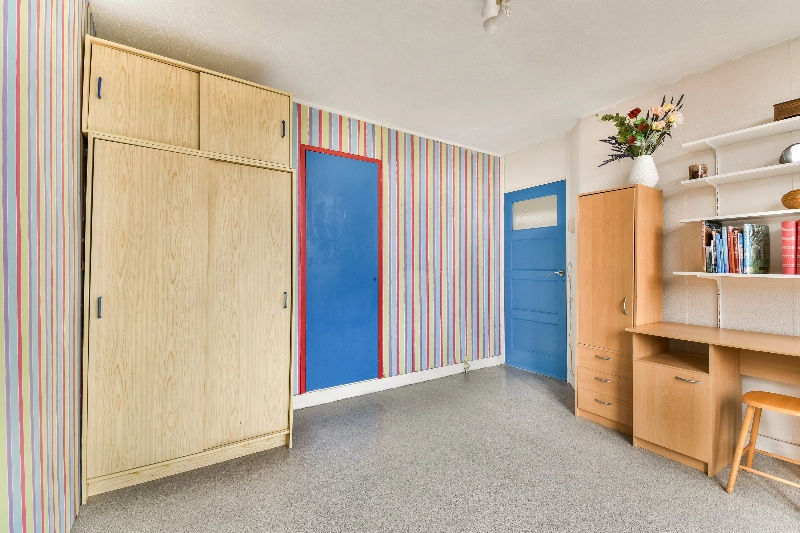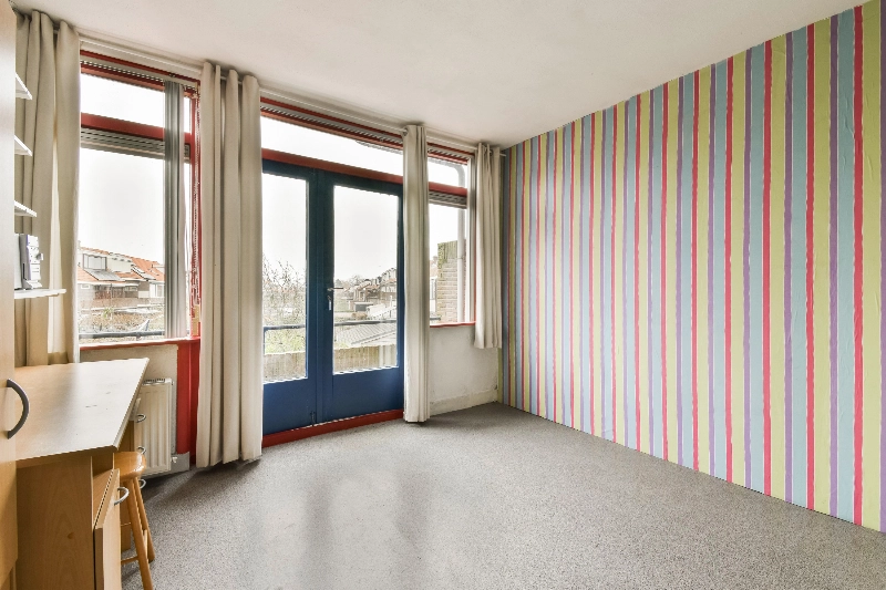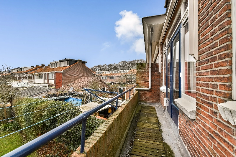 Aan de achterzijde van de woning bevindt zich de 3e slaapkamer met ook een ruime inbouwkast. Aangrenzend aan deze kamer vindt u over de gehele breedte een balkon met uitzicht over de tuin en de afmeting van deze kamer is ca. 3.42 x 3.36m.