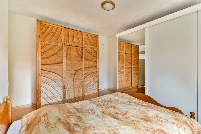 Slaapkamer 2 doet nu dienst als hoofdslaapkamer en beschikt over een vaste inbouwkast. Deze kamer heeft een afmeting van ca. 3.24 x 3.70m.