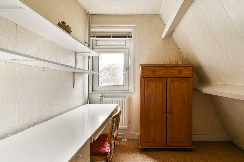 De grote zolderkamer aan de achterzijde is voorzien van een dakkapel en heeft een afmeting van ca 4.58 x 2.43/3.37m. Een heerlijke lichte ruimte met volop mogelijkheden,