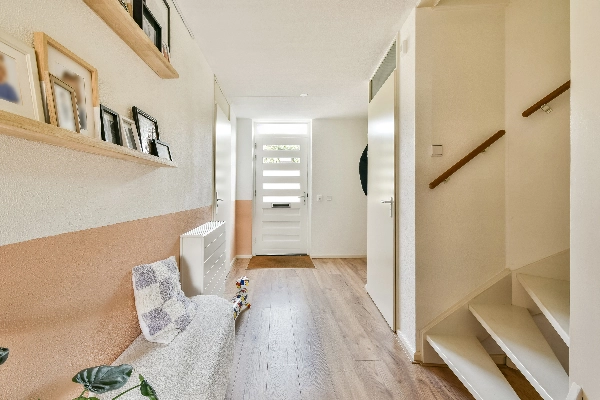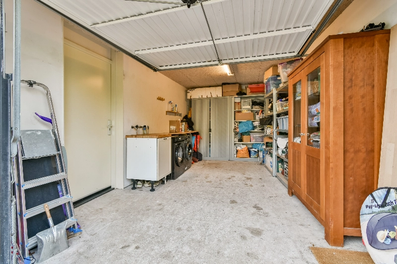 In de keurig onderhouden voortuin, voorzien van nieuwe schuttingen en een oplader voor een elektrische auto is er ruimte om twee auto's te parkeren. Hier is ook de toegang tot de garage (met overheaddeur ) met aansluiting voor de wasmachine en droger en daarnaast vind je voordeur. We gaan naar binnen en komen in een royale hal met uitgebreide meterkast en een laminaatvloer die doorloopt naar de tuinkamer. Via deze hal heb je intern toegang tot de garage.