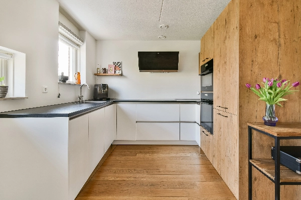 Deze verdieping is geheel voorzien van een mooie laminaatvloer en via de tussendeur bereik je de ruime woonkamer. Hier is in 2023 een airco geplaatst en aan de achterzijde hangt een zonnescherm. De woonkamer heeft een prachtig ruime zithoek met zicht op het binnenterrein en de woonkamer loopt door naar de voorzijde met plek voor een grote eettafel waar je met het hele gezin kunt tafelen. Aansluitend ligt de open keuken. Deze is in 2019 vervangen en uitgevoerd met een witte hoekopstelling met een prachtig granieten aanrechtblad en verder voorzien van vaatwasser, keramische kookplaat, afzuigkap en veel bergruimte waaronder een grote hoeklade. Aansluitend is een hoge opstelling in eikenlook welke is voorzien van koelkast, vriezer, oven en een combi-oven.