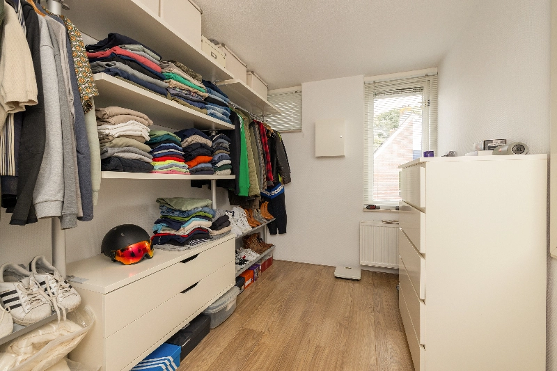 De grote zolderkamer is voorzien van een dakraam en biedt volop mogelijkheden: een extra slaapkamer, werkkamer, hobbyruimte of thuissportschool – aan u de keuze! Ook hier is veel bergruimte aanwezig achter de knieschotten.