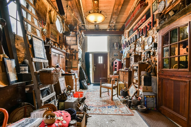Op de begane grond betreedt u de ruime hal met nostalgische. originele ramen die direct de authentieke sfeer onderstrepen. Hier bevindt zich tevens een kast met de opstelling van de c.v. ketel. De indrukwekkend ruime garage/atelier/werkplaats beschikt over een aparte wasruimte met toilet. Dankzij de royale afmetingen is er voldoende plek om zelfs twee auto's binnen te stallen.