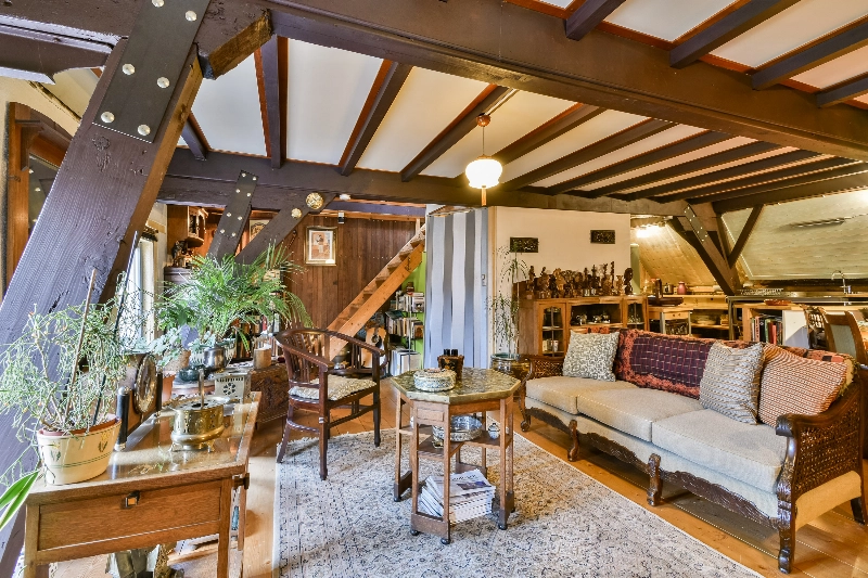 Deze sfeervolle etage met de zichtbare dakspanten heeft 2 dakkapellen. De dubbele deuren geven toegang tot de loggia, waar de vloer onlangs is vernieuwd met nieuw bitumen. Het is goed mogelijk om op deze verdieping twee slaapkamers te creëren.