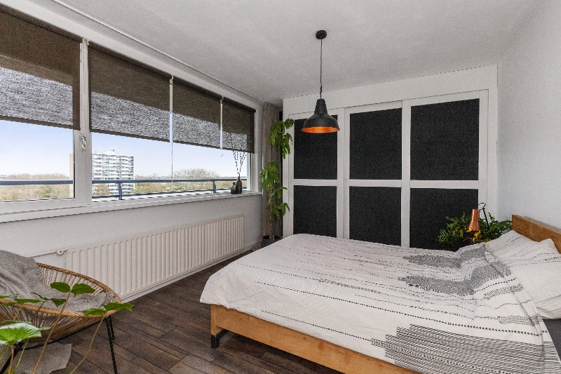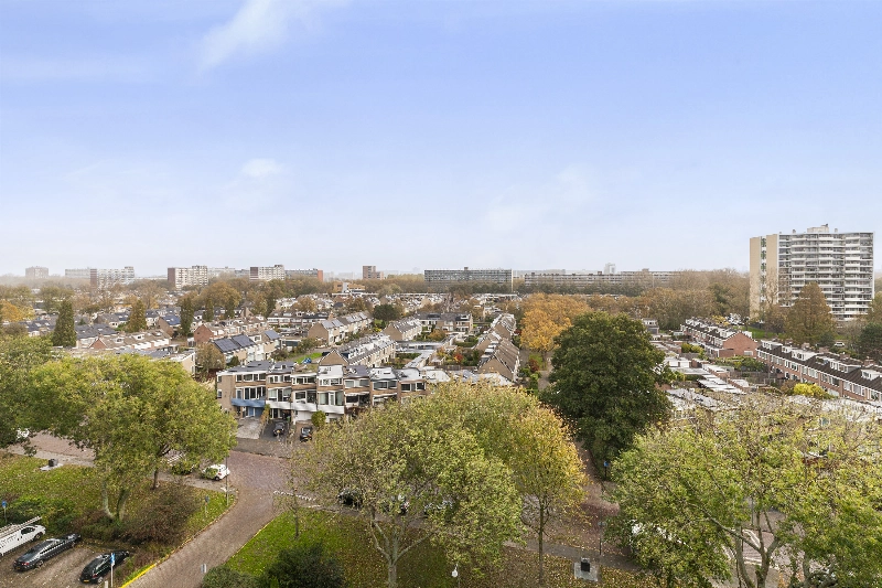 Je vindt dit moderne appartement op de 8e woonlaag van een goed onderhouden en geliefd appartementencomplex. Door de ligging op de 8e verdieping heb je een prachtig uitzicht aan zowel voor- als achterzijde van de woning. Het gehele appartement is voorzien van kunststof kozijnen met dubbele beglazing en er is een uitgebreid, moderne keuken. Alle vloeren zijn voorzien van laminaat en de wanden zijn afgewerkt met spachtelputz.