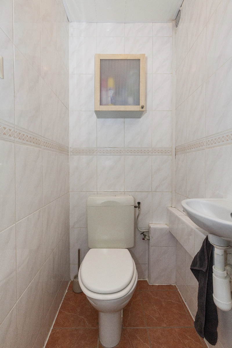 In deze hal vind je meterkast, een vaste kast en het geheel betegelde toilet met fontein.