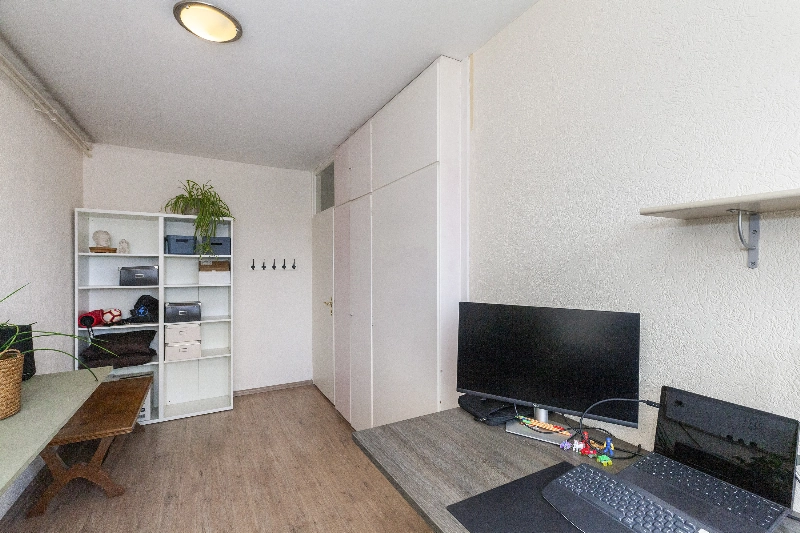 Slaapkamer III, eveneens gelegen aan de achterzijde en voorzien van een kastenwand.