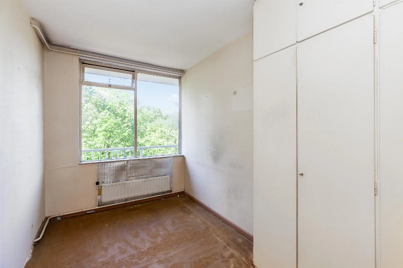 Slaapkamer I. Deze kamer is gelegen aan de galerijzijde en is voorzien van een vaste kastenwand.