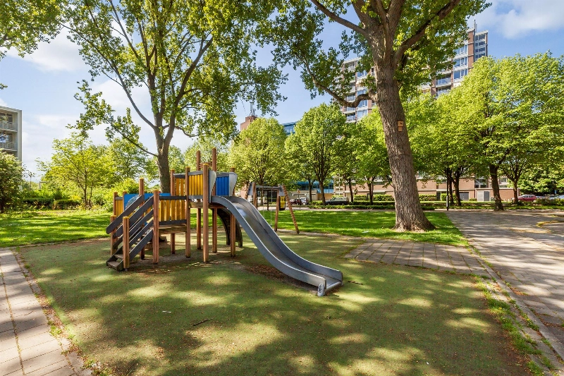 Er is op de begane grond een afgesloten centrale entree met lift aanwezig en u parkeert uw auto op een parkeerplaats op het eigen terrein. Bij het appartement hoort een aparte fietsenberging. Het complex heeft een actieve Vereniging van Eigenaren en het onderhoud is goed te noemen, op dit moment wordt vanuit de VVE de galerij gerenoveerd en voorzien van een luxe glazen balustrade.