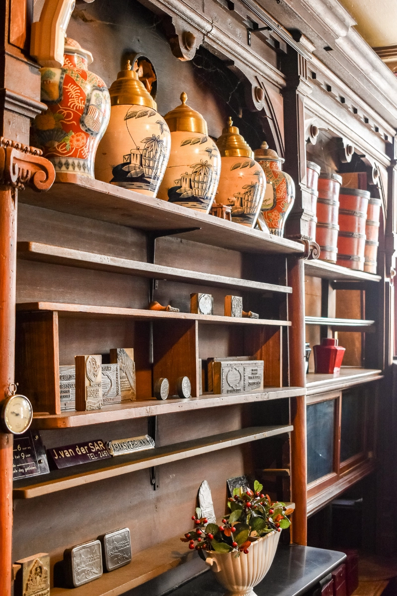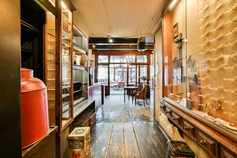 Bij binnenkomst in de winkelruimte valt direct de karakteristieke inrichting op. De betimmering, toonbank en indeling ademen de sfeer van een traditionele speciaalzaak en geven de ruimte een warme, nostalgische uitstraling.