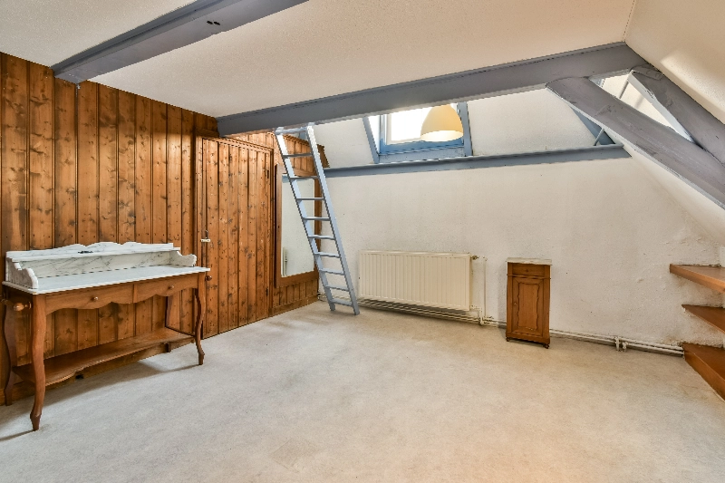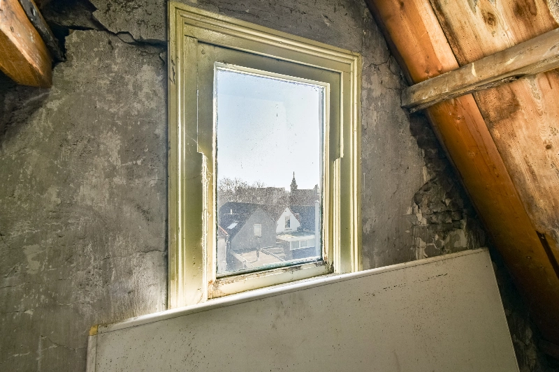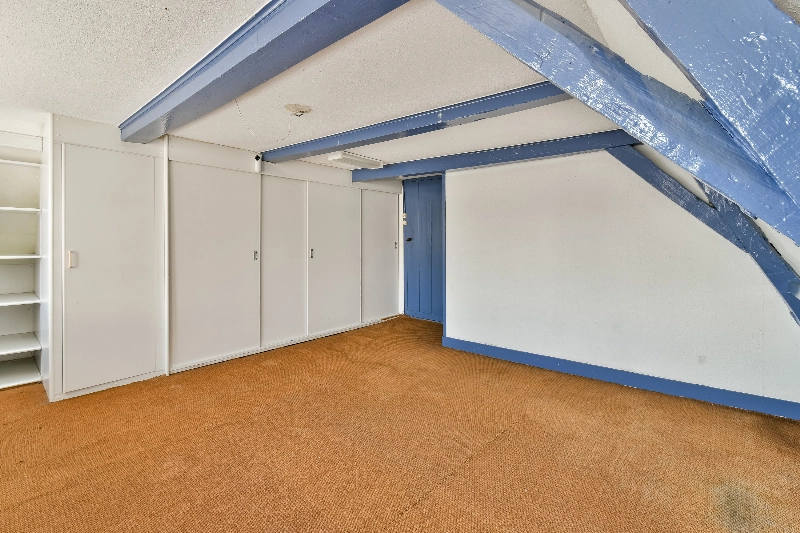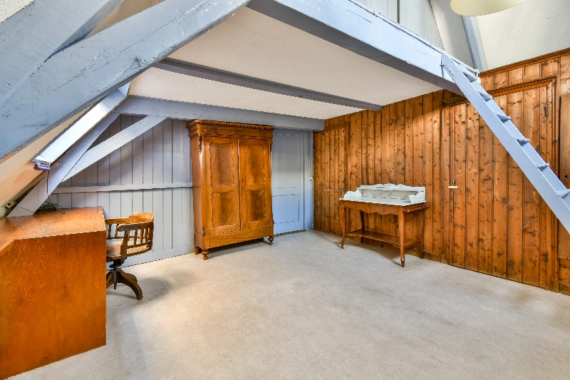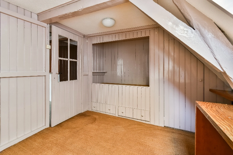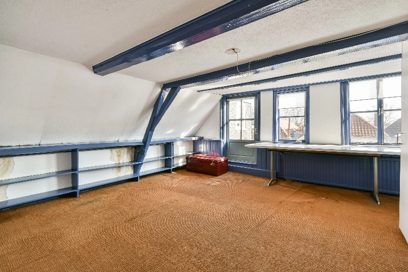 Via een vaste trap in slaapkamer III is de ruime vliering bereikbaar, die zich uitstrekt over de volledige breedte en diepte van het pand en extra bergruimte biedt.