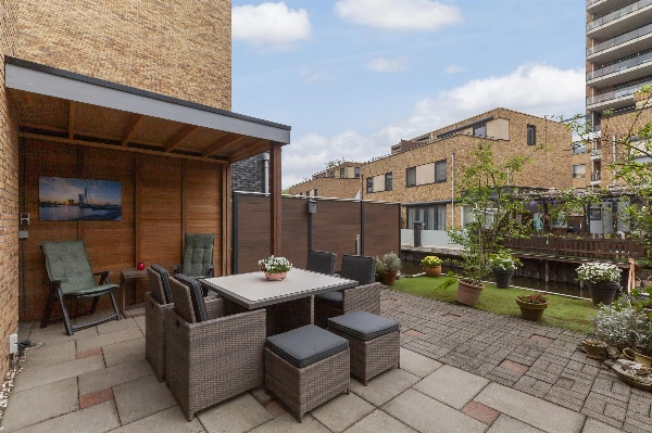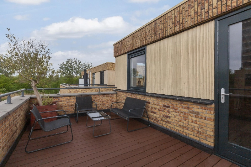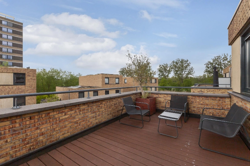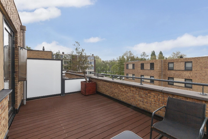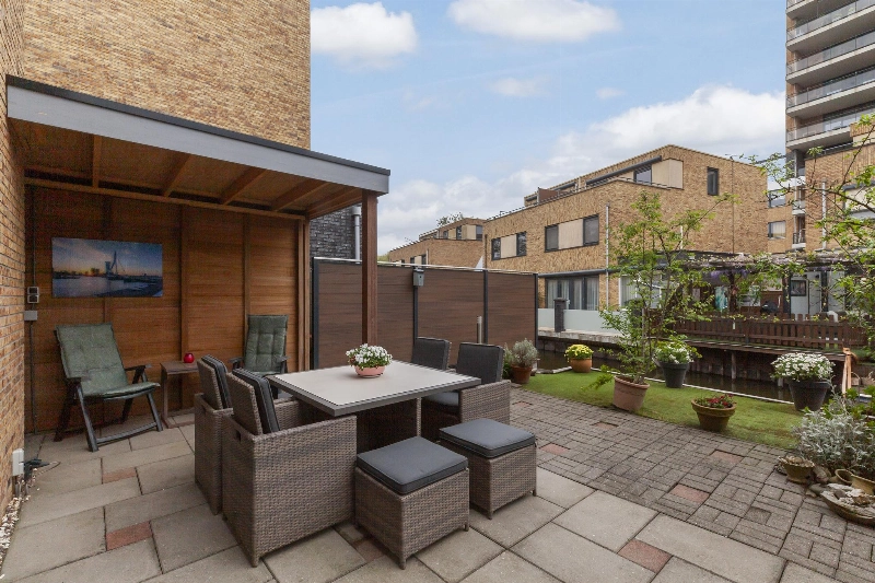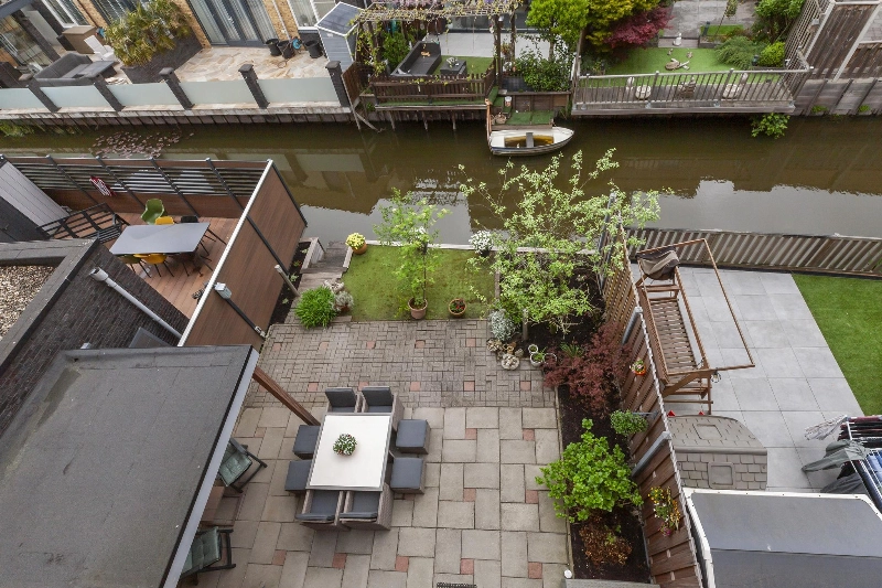 - Tuin aan het water aan de achterzijde en een dakterras op het zuiden;