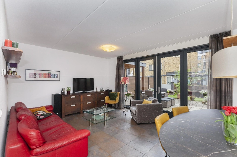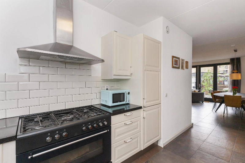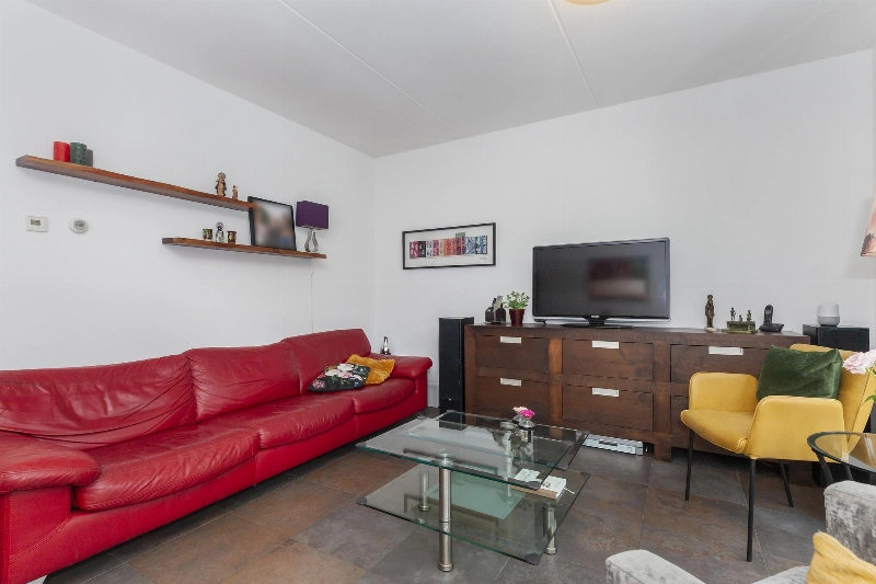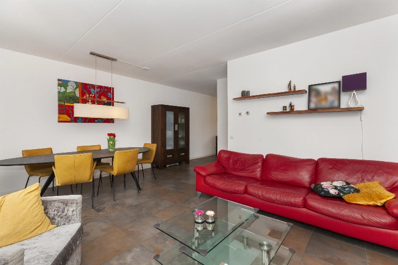 De woonkamer grenst aan de achterzijde en heeft daardoor een leuk, vrij zicht op de achtertuin en het aangrenzende water. Hier is voldoende plek voor een ruime zithoek en een grote eettafel.
