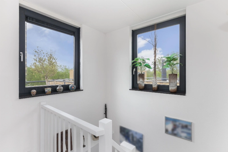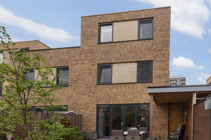 U zoekt rust, ruimte, water en groen? Dan moet u zeker een kijkje komen nemen bij deze mooie jonge 3-laagse hoekeengezinswoning op maar liefst 169 m2 eigen grond met een heerlijke tuin aan het water met een overkapping over de steeg en een dakterras op de 2e verdieping. De woning is gebouwd in 2012 en is volledig geïsoleerd. De begane grondvloer is voorzien van een mooie plavuizen vloer met vloerverwarming (in de hal, toilet, woonkamer en keuken), alle wanden zijn voorzien van spuitwerk en er is een moderne hoekkeuken voorzien van inbouwapparatuur. De verdieping telt 3 ruime slaapkamers en een grote moderne badkamer met een inloopdouche, een wastafel en een 2e toilet.