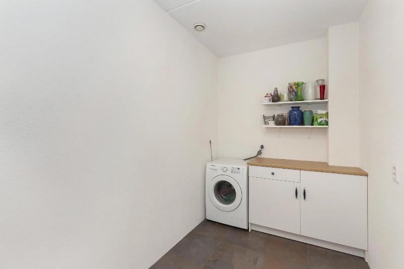 Entree via de ruime gang welke voorzien is van een moderne plavuizen vloer met vloerverwarming welke doorloopt naar de woonkamer en keuken. In deze gang vind je een meterkast en een geheel betegelde toiletruimte met zwevend closet en fontein. De ruime inpandige berging is van binnenuit én van buitenaf te bereiken. Deze is voorzien van vloertegels, spuitwerkwanden, een pantry en wasmachine-aansluiting. Maar er is nog een verrassing.. deze woning heeft namelijk een kelder! Hier is een overloop met plavuizen en een extra kelderkamer met vinyl op de vloer. Een leuke “chillplek” voor de kinderen of gewoon voor extra opbergruimte!