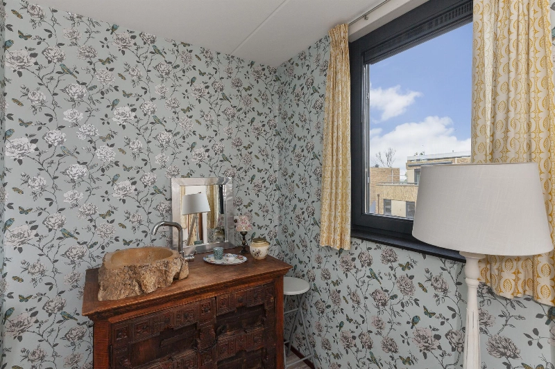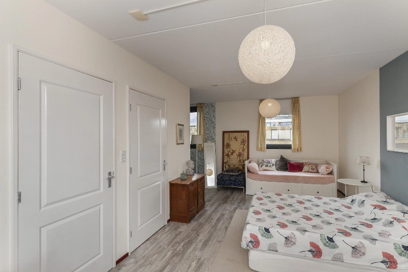 Op deze verdieping is een grote slaapkamer gerealiseerd welke is voorzien van een laminaatvloer en aan de achterzijde is een mooie hoek gerealiseerd met een waskom op een oude Chinese kast voorzien van warm en koud water. De aparte berging (ook weer ruim!) is voorzien van de opstelplaats voor de CV en de mechanische ventilatie. Vanuit de zolderkamer heeft u toegang tot het op het zuiden gelegen dakterras Hier kunt u vroeg in het jaar al van de eerste zonnestralen genieten!