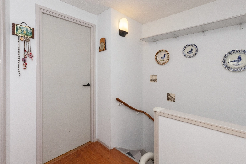 Ruime overloop met een luik naar de bergvliering en er is een vaste inbouwkast.