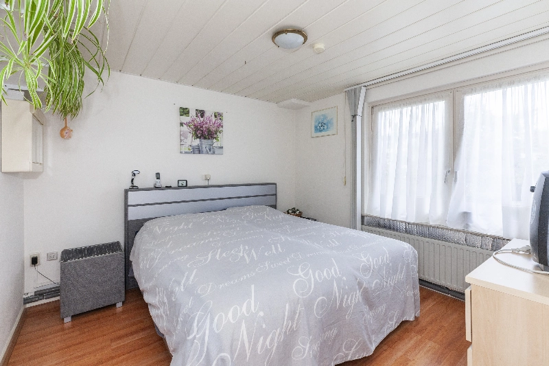 Slaapkamer II is gelegen aan de voorzijde en thans in gebruik als hoofdslaapkamer, met een vaste inbouwkast en de vloer is afgewerkt met een laminaatvloer welke doorloopt over de gehele etage.